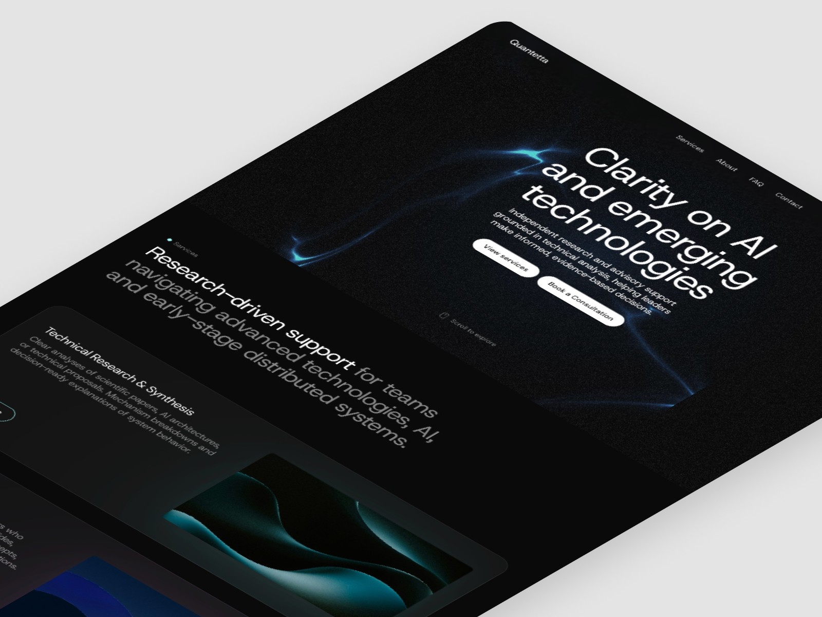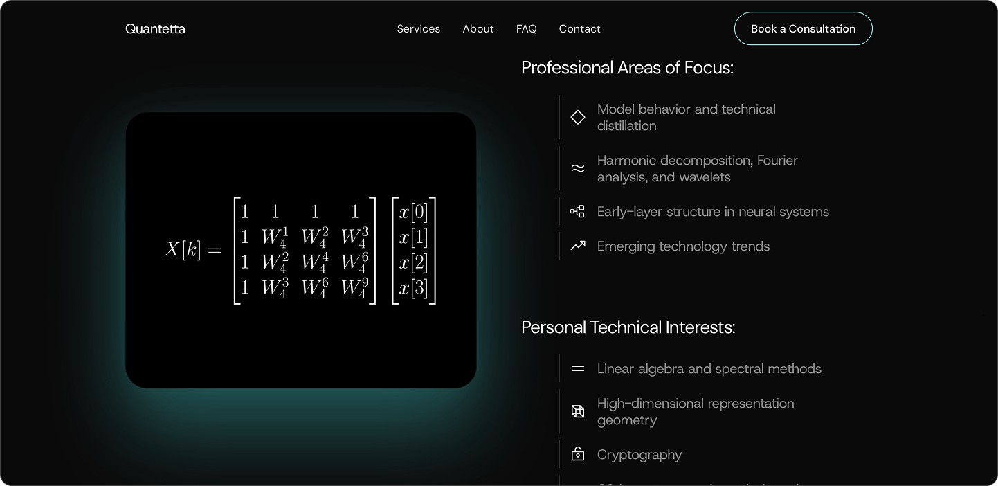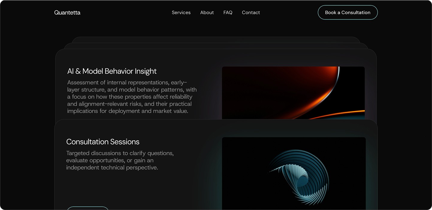 Quantetta required a fully functional website fast—far faster than a typical design and development cycle allows. The initial structure had to be based on a Framer template for efficiency, but the default sections didn’t support the content or communicate the brand’s message effectively. Beyond just launching quickly, the site needed to feel credible, visually consistent, and engaging, with interactions that elevate the experience instead of looking generic or template-bound.