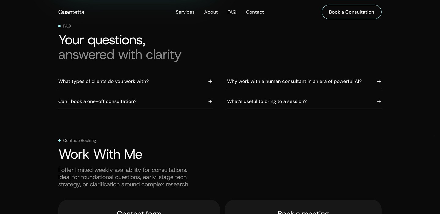 Despite the rapid development timeline, the result is a clean, responsive website that communicates clearly, looks polished, and remains easy to update for the Quantetta team.